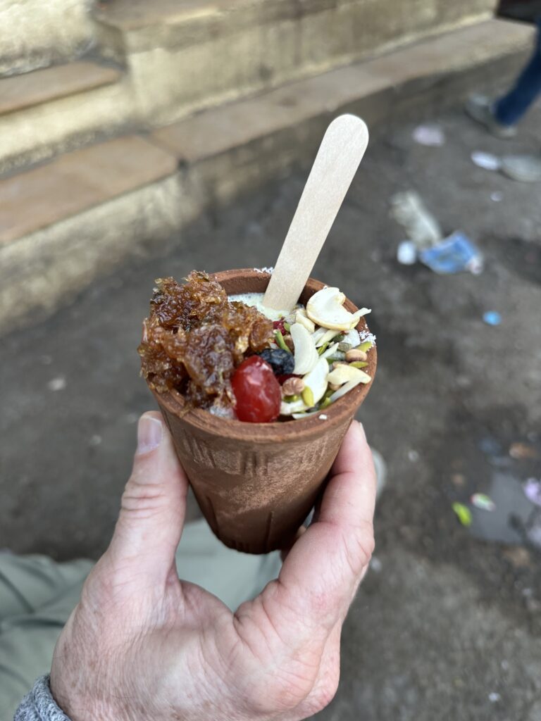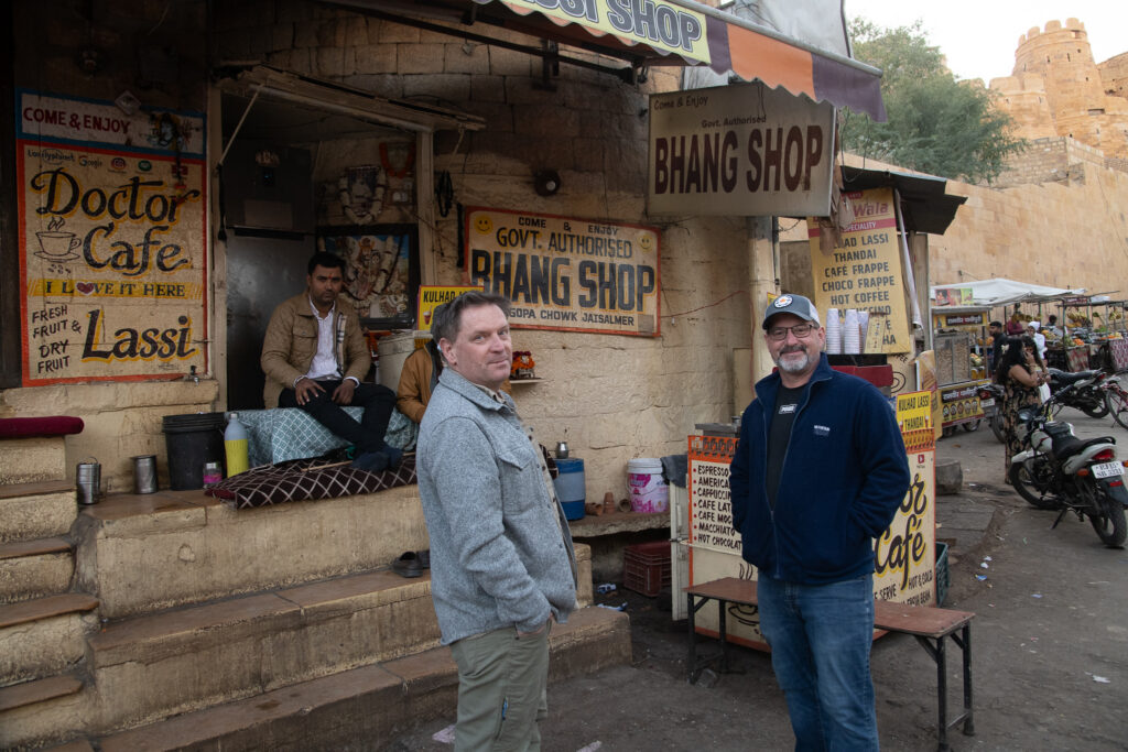 Out for a walk we stopped at the infamous “government authorized” Bhang Shop (it is one of the few Government authorized cannabis or Bhang shops in India). This meant that the lassis (local yoghurt drinks) include edible cannabis in the mix. (They also have drug-laced cookies and joints, if drug-laced drinks aren’t your thing.) Brendan and Dylan being Brendan and Dylan ordered; I sipped on mine eyeing the cannabis leaves and buds floating around my cup.