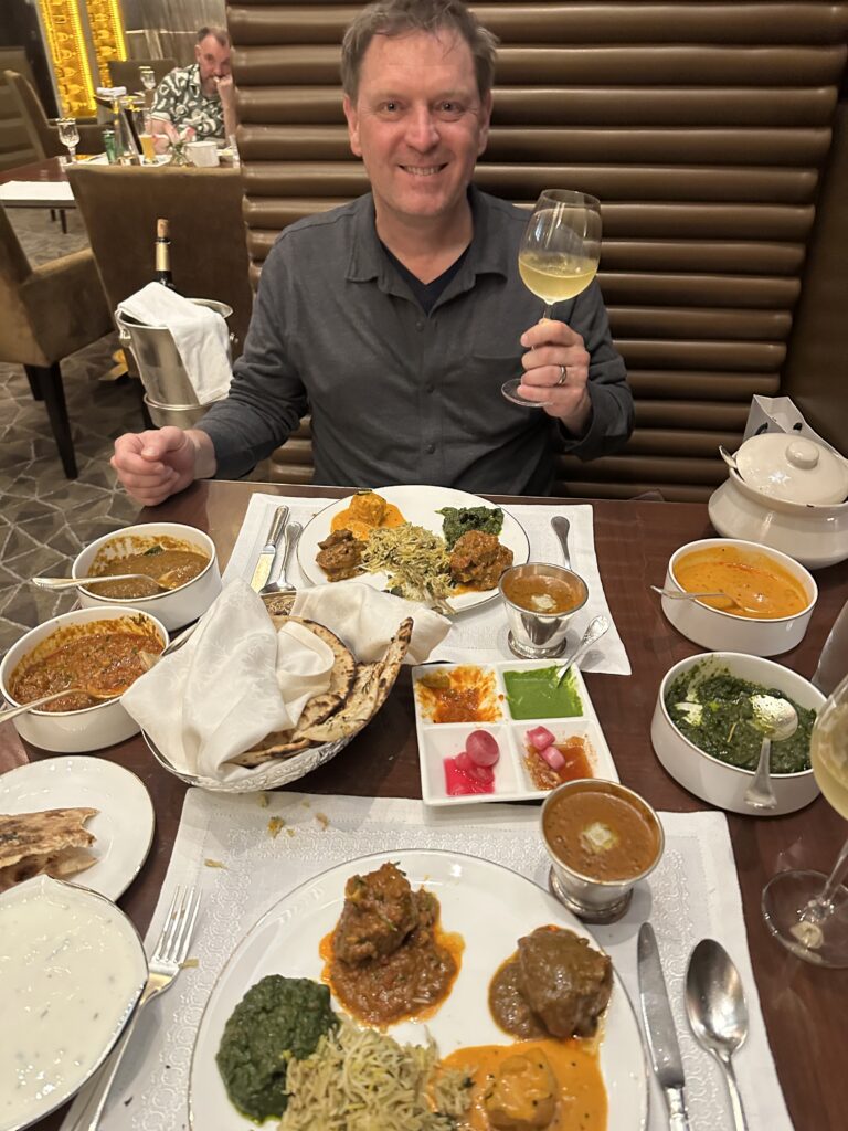 Then we were taken by Timmy Varuna, the father of one of Brendan and Mel’s real estate agents, to a place called Haveli (Rangla Punjab). It is promoted as recreating “the charm of an old Punjabi village with cultural performances, a traditional buffet, and engaging activities. A perfect destination to experience Punjab’s rich heritage”. We wandered around the place and then had a nice lunch. I particularly liked the cornmeal flatbread, makki di roti, which was served with a thick mustard green chilli cooked with spices.