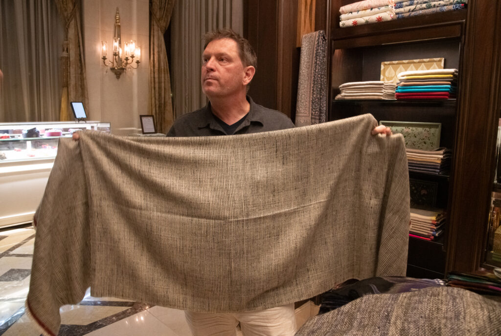 Brendan and I took a cab to the Leela Palace Bengalaru and in a beautiful shop purchased thick, hand-woven, greyish-brown cashmere shawls for Mel and Penny. Each one, they said, took 3 to 4 weeks to make.