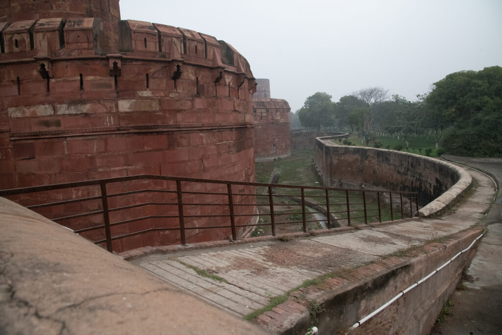 It’s a massive fort; its walls are seventy feet high and very thick. Double ramparts have massive circular bastions at intervals. The fort was built with bricks in the inner core with sandstone on external surfaces.