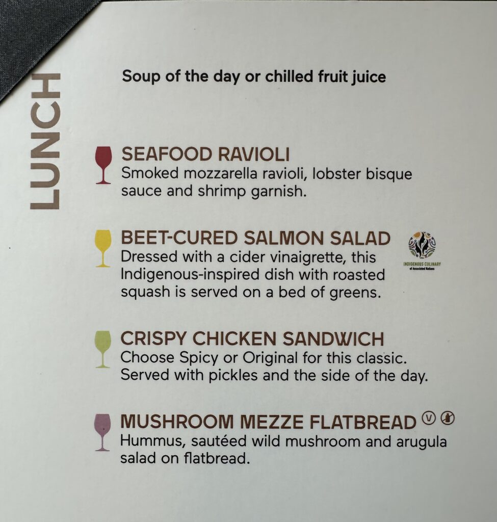 The bar service was unlimited (the steward made good daiquiris). The only complaint: the wine selection was parsimonious. I understand a Canadian focus, but there is now a wide range to choose from across Canada, and they didn’t do that.