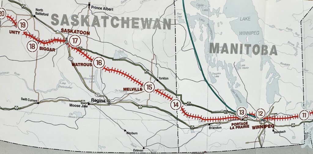The towns went by: Melville, Watrous and Saskatoon, where I once briefly lived while running a subsidiary company for Imperial Oil back in the 1970s. (The company expanded to cover the four western provinces, as which point I moved to Edmonton for three years.)