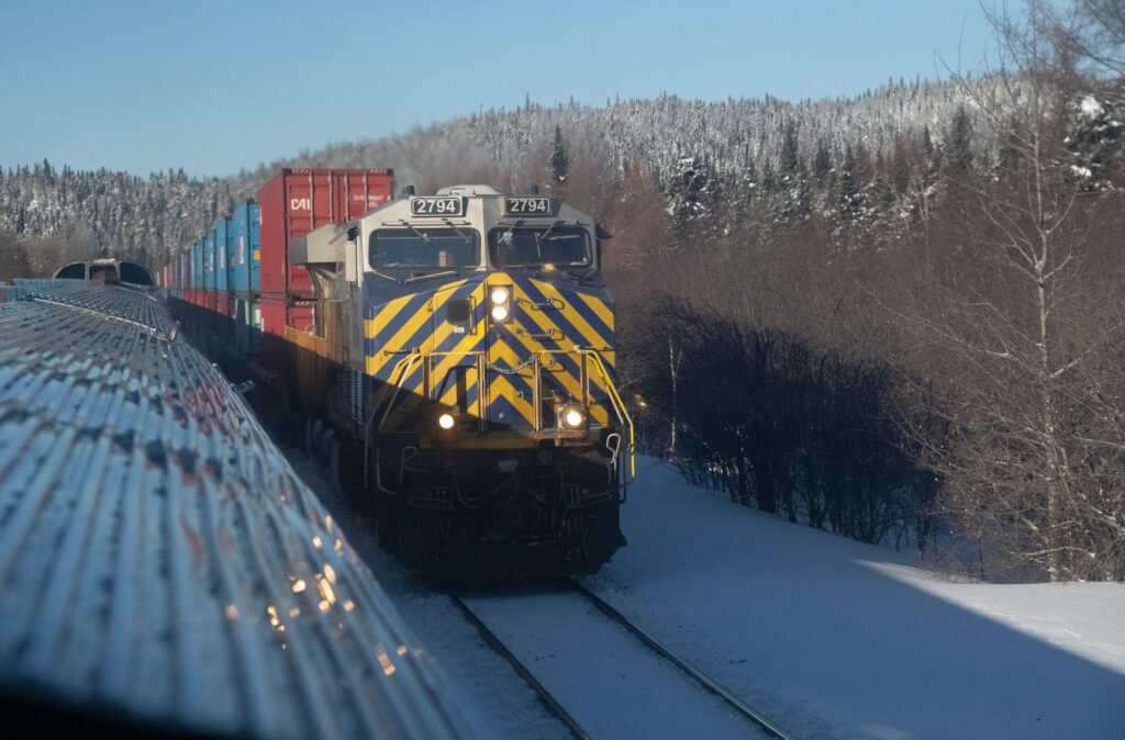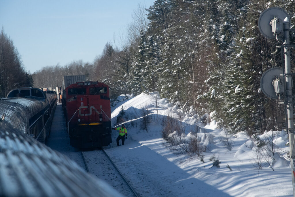 Our touristy 12 car train often took a back seat to the mammoth 100 plus car behemoths that carry the goods of Canada back and forth. It is now common for mainline trains to stretch to 120+ cars, often measuring 1 to 1¼ miles long (some potash trains can sometimes reach up to 170 cars!) We were often getting shunted off to side tracks, that held us until these freight trains passed, as they had priority.