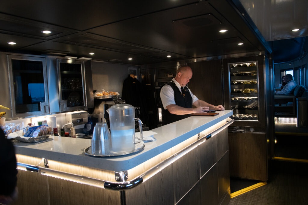There was reserved seating in the Park car (at the very end of the train, exclusive to Prestige class) and the dining car, as well as the Skyline car (which features a glass-domed upper level and a bar/cafe/snack bar underneath. We soon discovered we were the only suite in the bar car, and we didn’t waste that!
